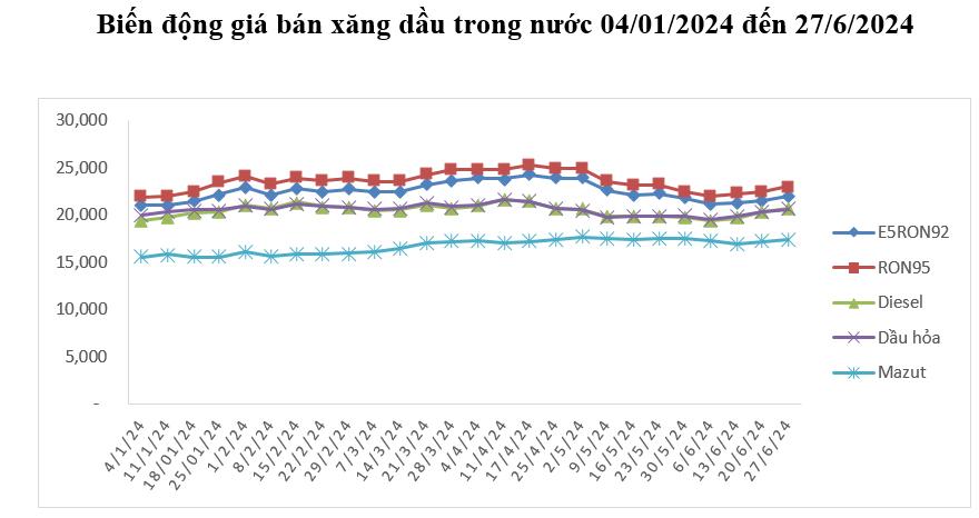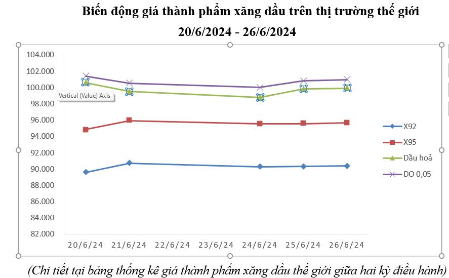Bình quân giá thành phẩm 33Win 4com nhà cái cá cược WC thế giới giữa kỳ điều hành giá ngày 20/6/2024 và kỳ điều hành ngày 27/6/2024 là: 90,268 USD/thùng xăng RON92 dùng để pha chế xăng E5RON92 (tăng 2,830 USD/thùng, tương đương tăng 3,24%); 95,508 USD/thùng xăng RON95 (tăng 2,830 USD/thùng, tương đương tăng 3,05%); 99,744 USD/thùng dầu hỏa (tăng 1,471 USD/thùng, tương đương tăng 1,50%); 100,736 USD/thùng dầu điêzen 0,05S (tăng 1,868 USD/thùng, tương đương tăng 1,89%); 512,390 USD/tấn dầu mazut 180CST 3,5S (tăng 7,890 USD/tấn, tương đương tăng 1,56%).