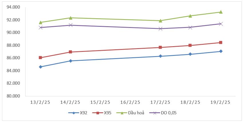 - Xăng RON95-III: không cao hơn 21.331 đồng/lít (tăng 257 đồng/lít so với giá cơ sở hiện hành);