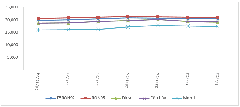 Biến động giá bán 33Win 4com nhà cái cá cược WC trong nước năm 2025 (26/12/2024 đến 06/02/2025)