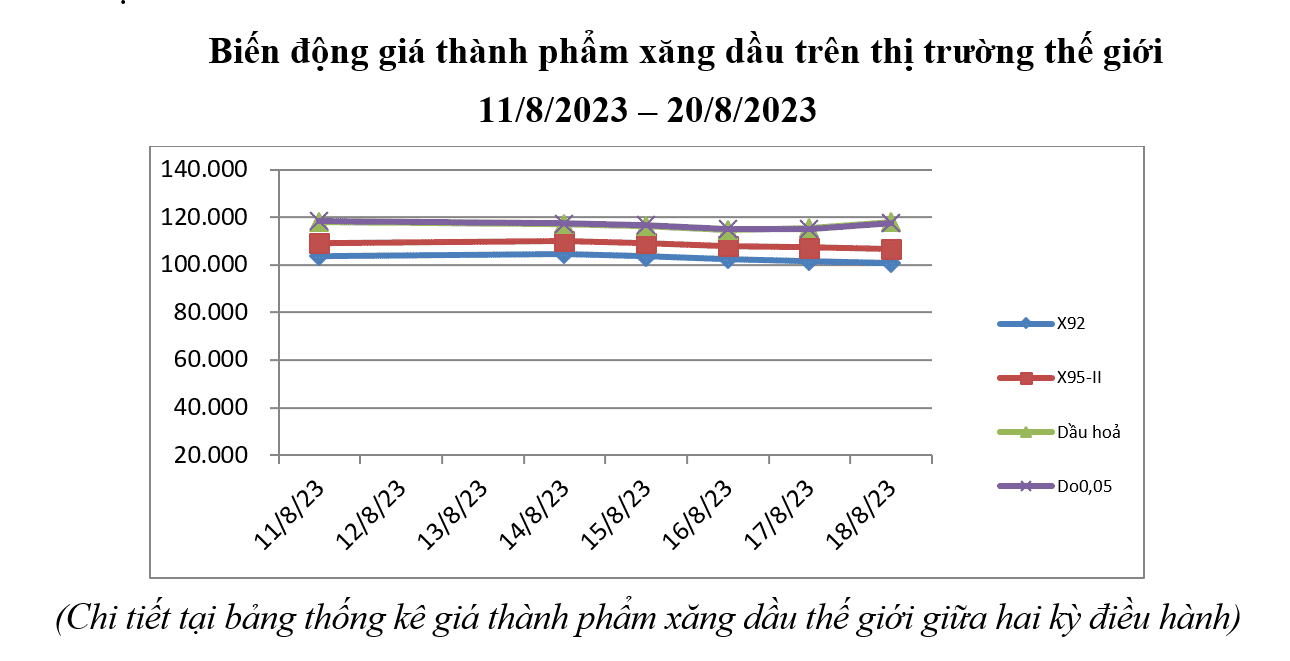 Bình quân giá thành phẩm 33Win 4com nhà cái cá cược WC thế giới giữa kỳ điều hành giá ngày 11/8/2023 và kỳ điều hành ngày 21/8/2023 là: 102,763 USD/thùng xăng RON92 dùng để pha chế xăng E5RON92 (tăng 3,128 USD/thùng, tương đương tăng 3,14% so với kỳ trước); 108,383 USD/thùng xăng RON95 (tăng 3,128 USD/thùng, tương đương tăng 2,97% so với kỳ trước); 116,528 USD/thùng dầu hỏa (tăng 2,664 USD/thùng, tương đương tăng 2,34% so với kỳ trước); 116,722 USD/thùng dầu điêzen (giảm 0,365 USD/thùng, tương đương giảm 0,31% so với kỳ trước); 544,317 USD/tấn dầu mazut 180CST 3,5S (giảm 4,049 USD/tấn, tương đương giảm 0,74% so với kỳ trước).