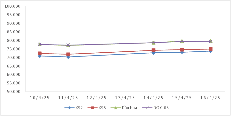 Bình quân giá thành phẩm 33Win 4com nhà cái cá cược WC thế giới giữa kỳ điều hành giá ngày 10/4/2025 và kỳ điều hành ngày 17/4/2025 là: 72,216 USD/thùng xăng RON92 dùng để pha chế xăng E5RON92 (giảm 1,968 USD/thùng, tương đương giảm 2,65%); 73,670 USD/thùng xăng RON95 (giảm 1,664 USD/thùng, tương đương giảm 2,21%); 78,618 USD/thùng dầu hỏa (giảm 1,102 USD/thùng, tương đương giảm 1,38%); 78,520 USD/thùng dầu điêzen 0,05S (giảm 0,964 USD/thùng, tương đương giảm 1,21%); 422.548 USD/tấn dầu mazut 180CST 3,5S (tăng 3,020 USD/tấn, tương đương tăng 0,72%).