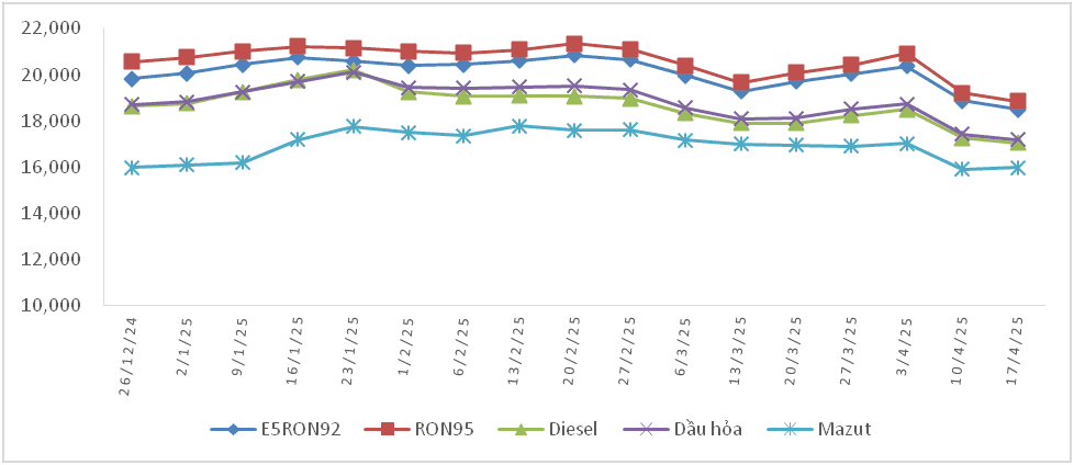 Biến động giá bán 33Win 4com nhà cái cá cược WC trong nước năm 2025 (26/12/2024 đến 17/4/2025)