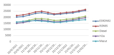 Không thực hiện trích lập Quỹ BOG đối với xăng E5RON92, xăng RON95, dầu diesel, dầu hỏa, giữ nguyên mức trích lập đối với dầu mazut ở mức 300 đồng/kg như kỳ điều hành ngày 11 tháng 02 năm 2022.