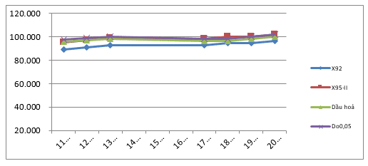 Bình quân giá thành phẩm 33Win 4com nhà cái cá cược WC thế giới giữa kỳ điều hành giá ngày 11/7/2023 và kỳ điều hành ngày 21/7/2023 là: 93,120 USD/thùng xăng RON92 dùng để pha chế xăng E5RON92 (tăng 7,390 USD/thùng, tương đương tăng 8,62% so với kỳ trước); 98,920 USD/thùng xăng RON95 (tăng 7,235 USD/thùng, tương đương tăng 7,89% so với kỳ trước); 97,611 USD/thùng dầu hỏa (tăng 5,483 USD/thùng, tương đương tăng 5,95% so với kỳ trước); 99,540 USD/thùng dầu điêzen (tăng 5,550 USD/thùng, tương đương tăng 5,90% so với kỳ trước); 471,240 USD/tấn dầu mazut 180CST 3,5S (tăng 17,068 USD/tấn, tương đương tăng 3,76% so với kỳ trước).