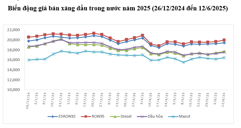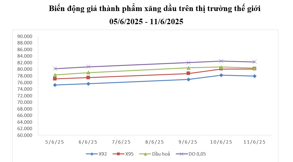 Bình quân giá thành phẩm 33Win 4com nhà cái cá cược WC thế giới giữa kỳ điều hành giá ngày 05/6/2025 và kỳ điều hành ngày 12/6/2025 là: 76,748 USD/thùng xăng RON92 dùng để pha chế xăng E5RON92 (tăng 1,078 USD/thùng, tương đương tăng 1,42%); 78,664 USD/thùng xăng RON95 (tăng 1,358 USD/thùng, tương đương tăng 1,76%); 79,740 USD/thùng dầu hỏa (tăng 1,270 USD/thùng, tương đương tăng 1,62%); 81,506 USD/thùng dầu diesel 0,05S (tăng 1,558 USD/thùng, tương đương tăng 1,95%); 436,152 USD/tấn dầu mazut 180CST 3,5S (tăng 9,814 USD/tấn, tương đương tăng 2,30%).