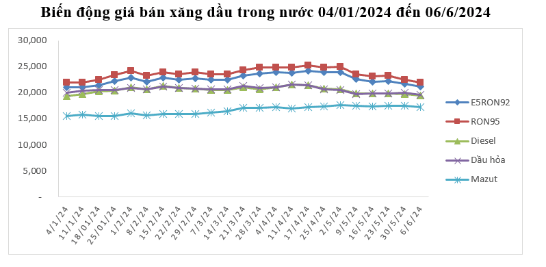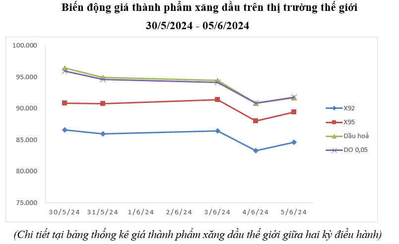 Bình quân giá thành phẩm 33Win 4com nhà cái cá cược WC thế giới giữa kỳ điều hành giá ngày 30/5/2024 và kỳ điều hành ngày 06/6/2024 là: 85,366 USD/thùng xăng RON92 dùng để pha chế xăng E5RON92 (giảm 3,830 USD/thùng, tương đương giảm 4,29%); 90,098 USD/thùng xăng RON95 (giảm 2,832 USD/thùng, tương đương giảm 3,05%); 93,672 USD/thùng dầu hỏa (giảm 2,134 USD/thùng, tương đương giảm 2,23%); 93,490 USD/thùng dầu điêzen 0,05S (giảm 1,842 USD/thùng, tương đương giảm 1,93%); 506,712 USD/tấn dầu mazut 180CST 3,5S (giảm 8,908 USD/tấn, tương đương giảm 1,73%).