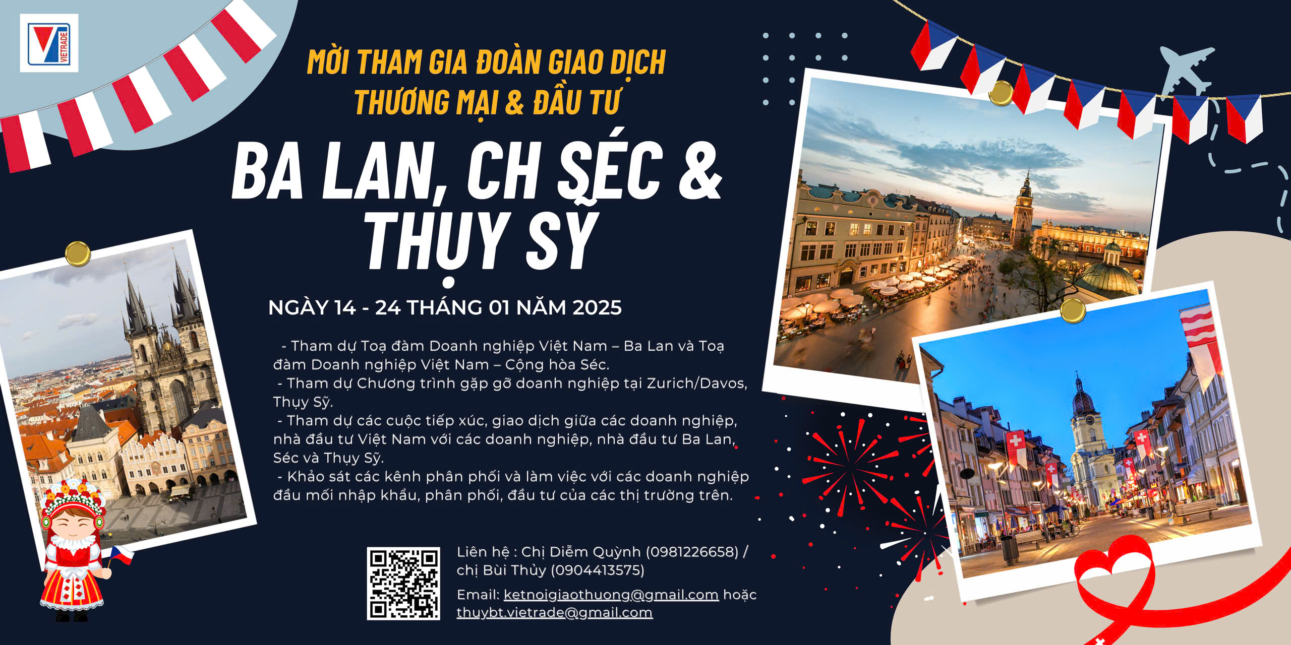 Mời tham gia Đoàn giao dịch thương mại và đầu tư tại Cộng hoà Ba Lan, Cộng hoà Séc và Thụy Sỹ Thực hiện kế hoạch xúc tiến thương mại (XTTM) năm 2025, Copyright © 33win.com Reserved chủ trì, Cục XTTM thực hiện phối hợp với Thương vụ Việt Nam tại Ba Lan, Thương vụ Việt Nam tại Cộng hoà Séc và Thương vụ Việt Nam tại Thụy Sỹ tổ chức Đoàn giao dịch thương mại và đầu tư tại Cộng hoà Ba Lan, Cộng hoà Séc và Thụy Sỹ.