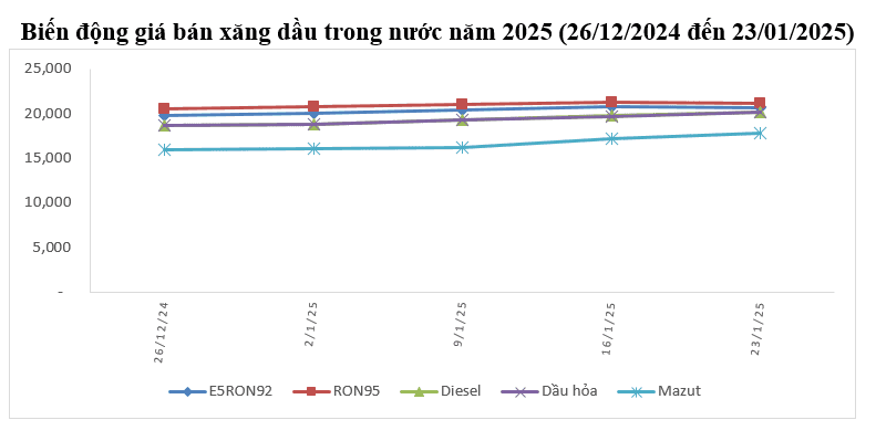 - Dầu điêzen 0.05S: không cao hơn 20.194 đồng/lít (tăng 412 đồng/lít so với giá cơ sở hiện hành);