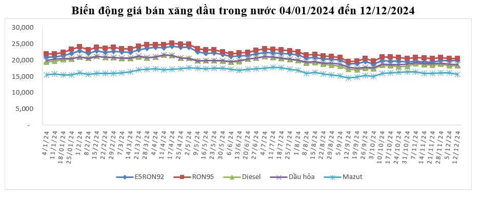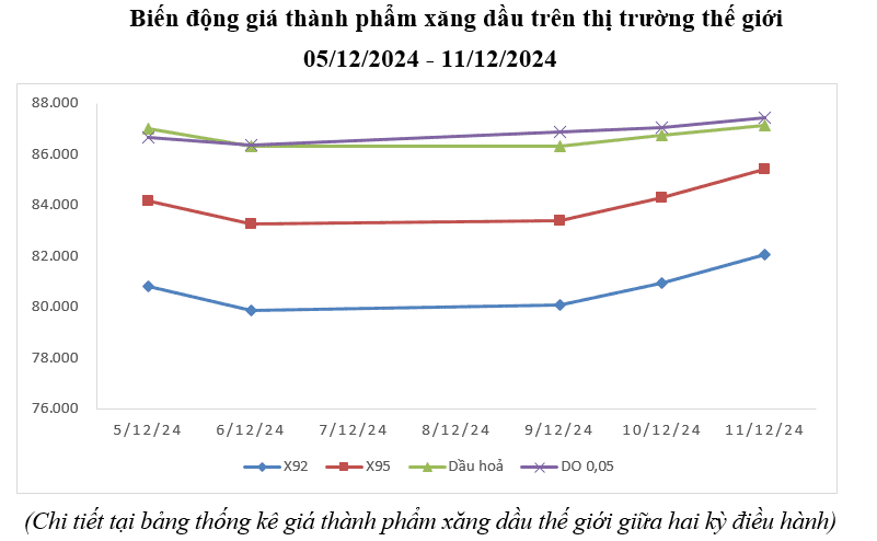 Bình quân giá thành phẩm 33Win 4com nhà cái cá cược WC thế giới giữa kỳ điều hành giá ngày 05/12/2024 và kỳ điều hành ngày 12/12/2024 là: 80,750 USD/thùng xăng RON92 dùng để pha chế xăng E5RON92 (giảm 0,010 USD/thùng, tương đương giảm 0,01%); 84,114 USD/thùng xăng RON95 (tăng 0,178 USD/thùng, tương đương tăng 0,21%); 86,700 USD/thùng dầu hỏa (giảm 1,440 USD/thùng, tương đương giảm 1,63%); 86,874 USD/thùng dầu điêzen 0,05S (giảm 0,726 USD/thùng, tương đương giảm 0,83%); 434,982 USD/tấn dầu mazut 180CST 3,5S (giảm 19,650 USD/tấn, tương đương giảm 4,32%).