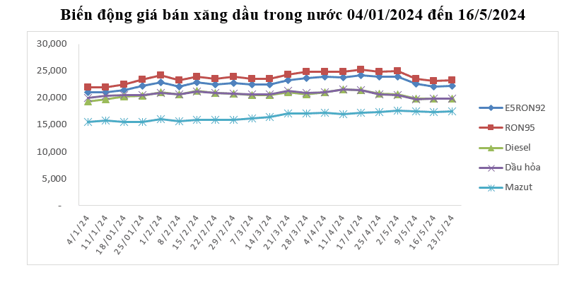 - Xăng RON95-III: không cao hơn 23.213 đồng/lít (tăng 78 đồng/lít so với giá cơ sở hiện hành);