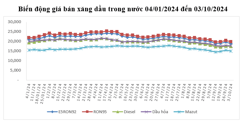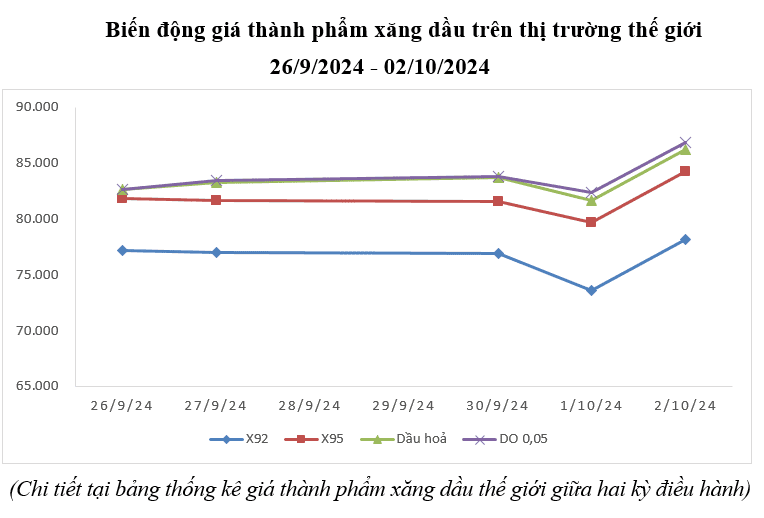 Bình quân giá thành phẩm 33Win 4com nhà cái cá cược WC thế giới giữa kỳ điều hành giá ngày 26/9/2024 và kỳ điều hành ngày 03/10/2024 là: 76,590 USD/thùng xăng RON92 dùng để pha chế xăng E5RON92 (giảm 4,352 USD/thùng, tương đương giảm 5,38%); 81,810 USD/thùng xăng RON95 (giảm 3,776 USD/thùng, tương đương giảm 4,41%); 83,504 USD/thùng dầu hỏa (giảm 1,368 USD/thùng, tương đương giảm 1,61%); 83,818 USD/thùng dầu điêzen 0,05S (giảm 0,628 USD/thùng, tương đương giảm 0,74%); 433,024 USD/tấn dầu mazut 180CST 3,5S (giảm 13,270 USD/tấn, tương đương giảm 2,97%).