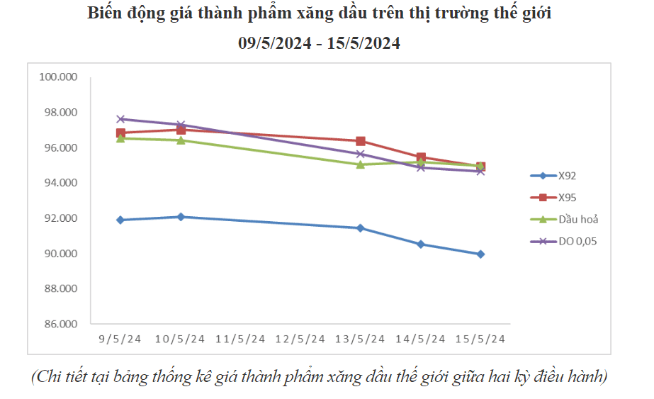 Bình quân giá thành phẩm 33Win 4com nhà cái cá cược WC thế giới giữa kỳ điều hành giá ngày 09/5/2024 và kỳ điều hành ngày 16/5/2024 là: 91,182 USD/thùng xăng RON92 dùng để pha chế xăng E5RON92 (giảm 2,944 USD/thùng, tương đương giảm 3,13%); 96,142 USD/thùng xăng RON95 (giảm 2,238 USD/thùng, tương đương giảm 2,27%); 95,636 USD/thùng dầu hỏa (tăng 1,098 USD/thùng, tương đương tăng 1,16%); 96,020 USD/thùng dầu điêzen 0,05S (tăng 0,056 USD/thùng, tương đương tăng 0,06%); 511.156 USD/tấn dầu mazut 180CST 3,5S (giảm 3,524 USD/tấn, tương đương giảm 0,68%).