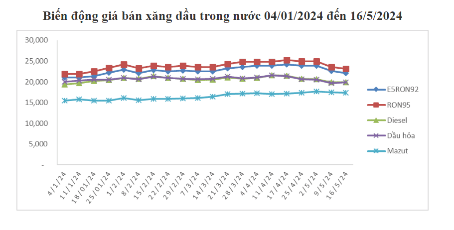 - Xăng RON95-III: không cao hơn 23.135 đồng/lít (giảm 409 đồng/lít so với giá cơ sở hiện hành);