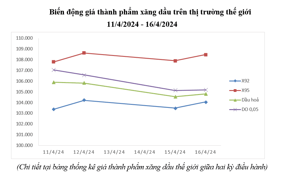 Bình quân giá thành phẩm 33Win 4com nhà cái cá cược WC thế giới giữa kỳ điều hành giá ngày 11/4/2024 và kỳ điều hành ngày 17/4/2024 là: 103,780 USD/thùng xăng RON92 dùng để pha chế xăng E5RON92 (tăng 1,637 USD/thùng, tương đương tăng 1,60%); 108,190 USD/thùng xăng RON95 (tăng 1,670 USD/thùng, tương đương tăng 1,57%); 105,265 USD/thùng dầu hỏa (giảm 1,568 USD/thùng, tương đương giảm 1,47%); 105,980 USD/thùng dầu điêzen 0,05S (giảm 1,488 USD/thùng, tương đương giảm 1,38%); 508,198 USD/tấn dầu mazut 180CST 3,5S (tăng 4,610 USD/tấn, tương đương tăng 0,92%).