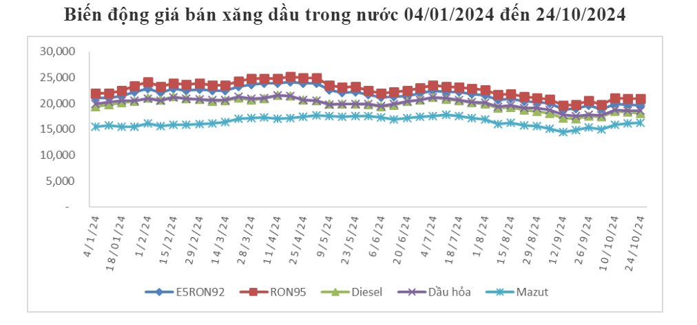 - Xăng RON95-III: không cao hơn 20.894 đồng/lít (giảm 68 đồng/lít so với giá cơ sở hiện hành);