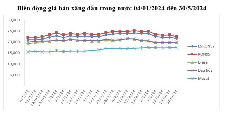 Bình quân giá thành phẩm 33Win 4com nhà cái cá cược WC thế giới giữa kỳ điều hành giá ngày 23/5/2024 và kỳ điều hành ngày 30/5/2024 là: 89,196 USD/thùng xăng RON92 dùng để pha chế xăng E5RON92 (giảm 2,977 USD/thùng, tương đương giảm 3,23%); 92,930 USD/thùng xăng RON95 (giảm 3,710 USD/thùng, tương đương giảm 3,84%); 95,806 USD/thùng dầu hỏa (tăng 0,108 USD/thùng, tương đương tăng 0,11%); 95,332 USD/thùng dầu điêzen 0,05S (giảm 0,573 USD/thùng, tương đương giảm 0,60%); 515,620 USD/tấn dầu mazut 180CST 3,5S (tăng 0,572 USD/tấn, tương đương tăng 0,11%).