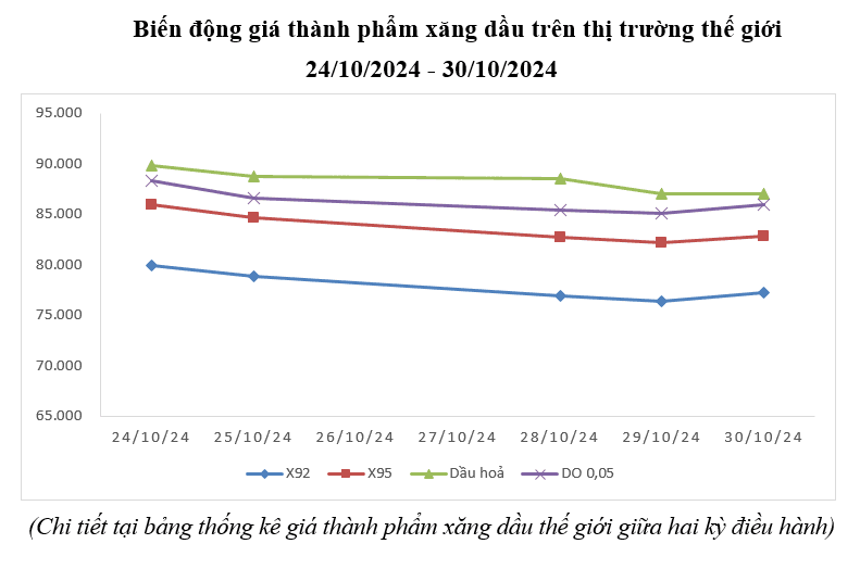 Bình quân giá thành phẩm 33Win 4com nhà cái cá cược WC thế giới giữa kỳ điều hành giá ngày 24/10/2024 và kỳ điều hành ngày 31/10/2024 là: 77,906 USD/thùng xăng RON92 dùng để pha chế xăng E5RON92 (giảm 1,812 USD/thùng, tương đương giảm 2,27%); 83,648 USD/thùng xăng RON95 (giảm 2,298 USD/thùng, tương đương giảm 2,67%); 88,246 USD/thùng dầu hỏa (tăng 1,328 USD/thùng, tương đương tăng 1,53%); 86,274 USD/thùng dầu điêzen 0,05S (tăng 0,340 USD/thùng, tương đương tăng 0,40%); 466,712 USD/tấn dầu mazut 180CST 3,5S (tăng 7,322 USD/tấn, tương đương tăng 1,59%).
