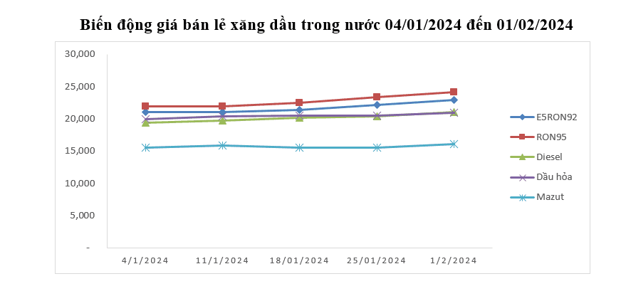 Bình quân giá thành phẩm 33Win 4com nhà cái cá cược WC thế giới giữa kỳ điều hành giá ngày 25/01/2024 và kỳ điều hành ngày 01/02/2024 là: 97,620 USD/thùng xăng RON92 dùng để pha chế xăng E5RON92 (tăng 4,668 USD/thùng, tương đương tăng 5,02% so với kỳ trước); 102,594 USD/thùng xăng RON95 (tăng 4,144 USD/thùng, tương đương tăng 4,21% so với kỳ trước); 103,640 USD/thùng dầu hỏa (tăng 2,432 USD/thùng, tương đương tăng 2,40% so với kỳ trước); 105,518 USD/thùng dầu điêzen 0,05S (tăng 3,870 USD/thùng, tương đương tăng 3,81% so với kỳ trước); 454,528 USD/tấn dầu mazut 180CST 3,5S (tăng 22,506 USD/tấn, tương đương tăng 5,21% so với kỳ trước).