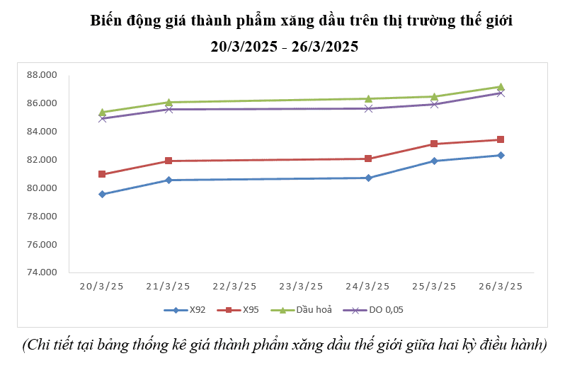 Bình quân giá thành phẩm 33Win 4com nhà cái cá cược WC thế giới giữa kỳ điều hành giá ngày 20/3/2025 và kỳ điều hành ngày 27/3/2025 là: 81,016 USD/thùng xăng RON92 dùng để pha chế xăng E5RON92 (tăng 1,682 USD/thùng, tương đương tăng 2,12%); 82,308 USD/thùng xăng RON95 (tăng 1,554 USD/thùng, tương đương tăng 1,92%); 86,304 USD/thùng dầu hỏa (tăng 2,098 USD/thùng, tương đương tăng 2,49%); 85,760 USD/thùng dầu điêzen 0,05S (tăng 1,624 USD/thùng, tương đương tăng 1,93%); 459,602 USD/tấn dầu mazut 180CST 3,5S (giảm 3,010 USD/tấn, tương đương giảm 0,65%).