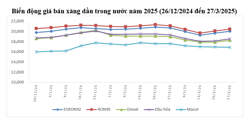 - Xăng RON95-III: không cao hơn 20.424 đồng/lít (tăng 337 đồng/lít so với giá cơ sở hiện hành);