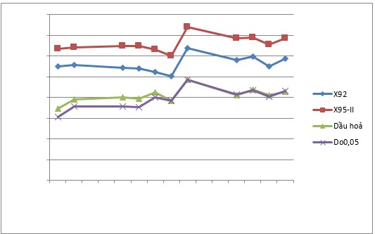 - Dầu hỏa: không cao hơn 15.082 đồng/lít (tăng 320 đồng/lít so với giá hiện hành);