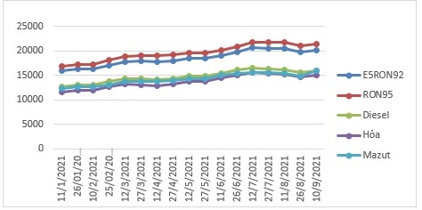 - Xăng RON95-III: không cao hơn 21.397 đồng/lít (tăng 266 đồng/lít so với giá hiện hành, );