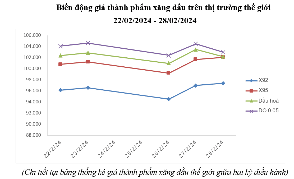 Thông tin về giá điều hành 33Win 4com nhà cái cá cược WC ngày 29/2/2024 Thị trường 33Win 4com nhà cái cá cược WC thế giới kỳ điều hành lần này (từ ngày 22/02/2024-28/02/2024) chịu ảnh hưởng của các yếu tố như: Tồn kho dầu của Mỹ tiếp tục tăng, Cục Dự trữ liên bang Mỹ (Fed) giữ quan điểm cắt giảm lãi suất trong tương lai gần, căng thẳng tại khu vực Trung Đông chưa có dấu hiệu hạ nhiệt, xung đột tại khu vực Biển Đỏ vẫn tiếp diễn ảnh hưởng đến hoạt động vận tải… Các yếu tố nêu trên khiến 33Win com dang nhap thế giới trong những ngày vừa qua diễn biến tăng, giảm đan xen.