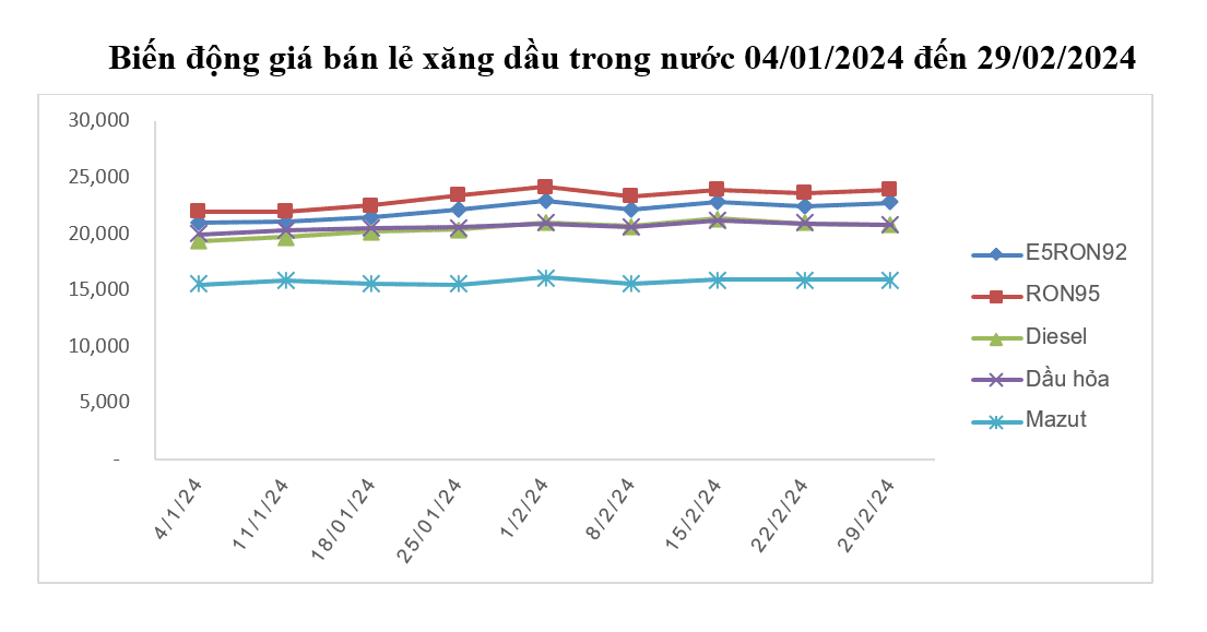 - Xăng RON95-III: không cao hơn 23.929 đồng/lít (tăng 330 đồng/lít so với giá cơ sở hiện hành);