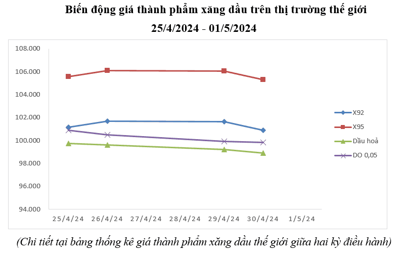 Bình quân giá thành phẩm 33Win 4com nhà cái cá cược WC thế giới giữa kỳ điều hành giá ngày 25/4/2024 và kỳ điều hành ngày 02/5/2024 là: 101,343 USD/thùng xăng RON92 dùng để pha chế xăng E5RON92 (tăng 0,171 USD/thùng, tương đương tăng 0,17%); 105,753 USD/thùng xăng RON95 (tăng 0,171 USD/thùng, tương đương tăng 0,16%); 99,363 USD/thùng dầu hỏa (giảm 0,794 USD/thùng, tương đương giảm 0,79%); 100,285 USD/thùng dầu điêzen 0,05S (giảm 0,607 USD/thùng, tương đương giảm 0,60%); 520,255 USD/tấn dầu mazut 180CST 3,5S (tăng 9,210 USD/tấn, tương đương tăng 1,80%).