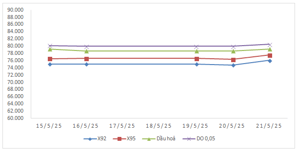 Bình quân giá thành phẩm 33Win 4com nhà cái cá cược WC thế giới giữa kỳ điều hành giá ngày 15/5/2025 và kỳ điều hành ngày 22/5/2025 là: 75,222 USD/thùng xăng RON92 dùng để pha chế xăng E5RON92 (giảm 0,271 USD/thùng, tương đương giảm 0,36%); 76,726 USD/thùng xăng RON95 (giảm 0,267 USD/thùng, tương đương giảm 0,35%); 78,916 USD/thùng dầu hỏa (tăng 0,536 USD/thùng, tương đương tăng 0,68%); 80,148 USD/thùng dầu điêzen 0,05S (tăng 1,035 USD/thùng, tương đương tăng 1,31%); 439,476 USD/tấn dầu mazut 180CST 3,5S (tăng 12,493 USD/tấn, tương đương tăng 2,93%).