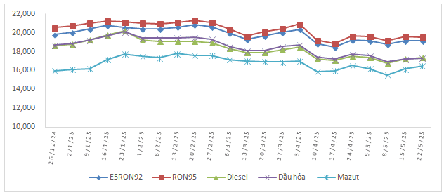 Biến động giá bán 33Win 4com nhà cái cá cược WC trong nước năm 2025 (26/12/2024 đến 22/5/2025)