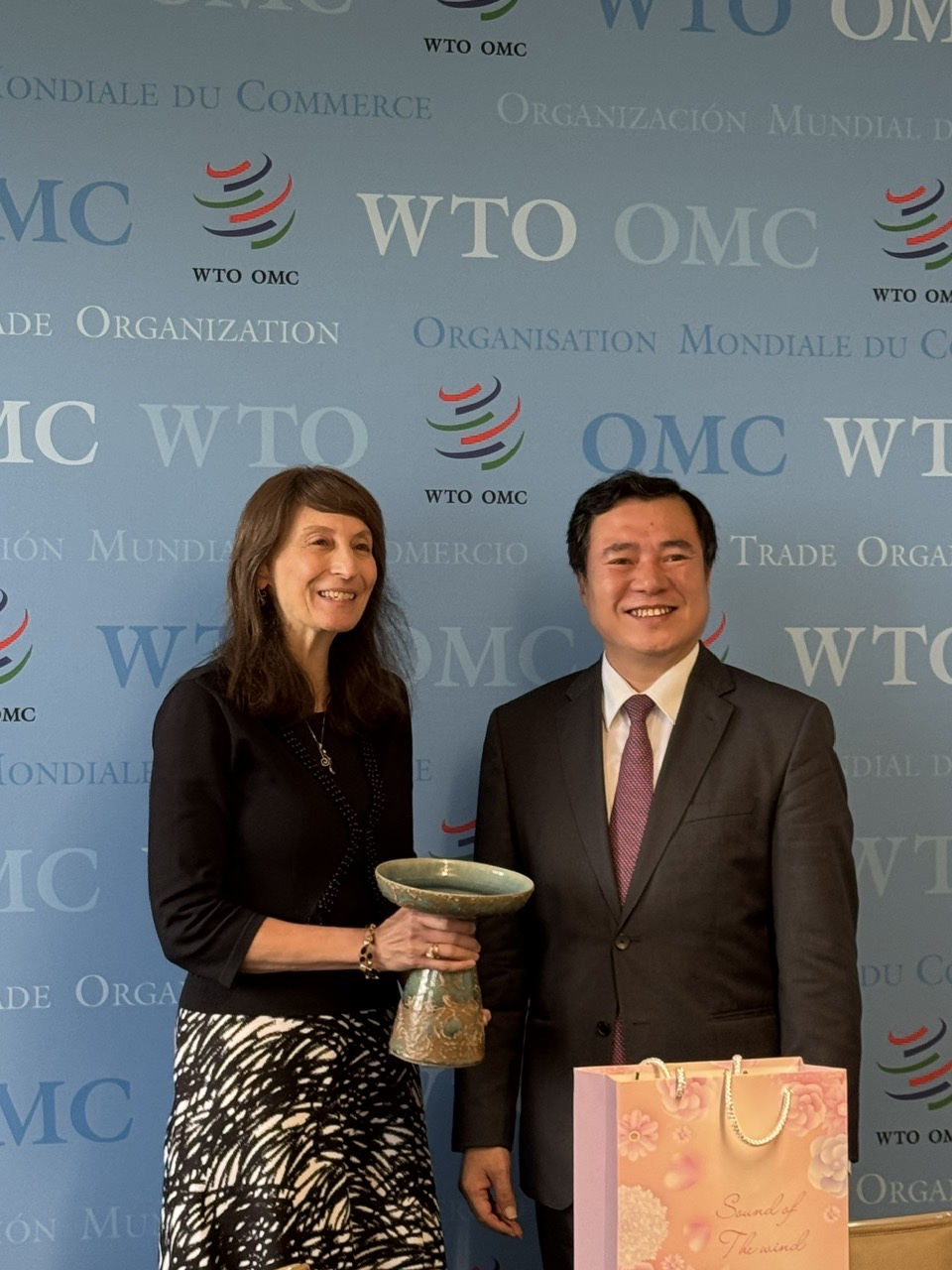 Thứ trưởng Nguyễn Sinh Nhật Tân làm việc với Bà Angela Paolini Ellard, Phó Tổng giám đốc WTO