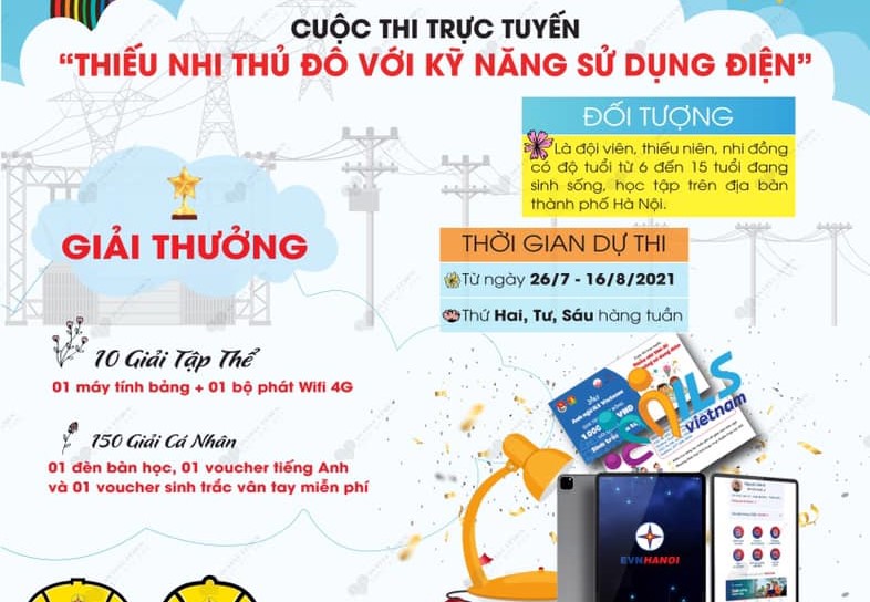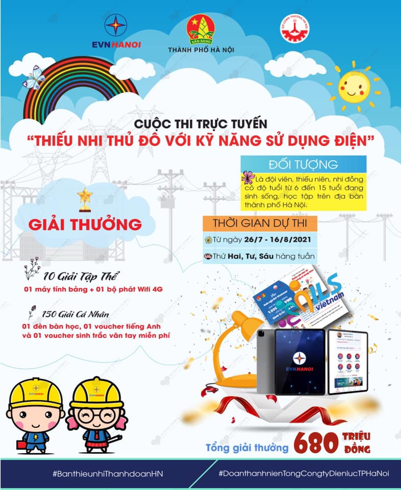 Thành đoàn Hà Nội, Hội đồng Đội Thành phố Hà Nội phối hợp với Đoàn Thanh niên Tổng công ty Điện lực TP Hà Nội (EVN Hà Nội), Đoàn Thanh niên Sở Công Thương Hà Nội và nhà tài trợ ILS Việt Nam tổ chức cuộc thi trực tuyến “Thiếu nhi Thủ đô với kỹ năng sử dụng điện”.