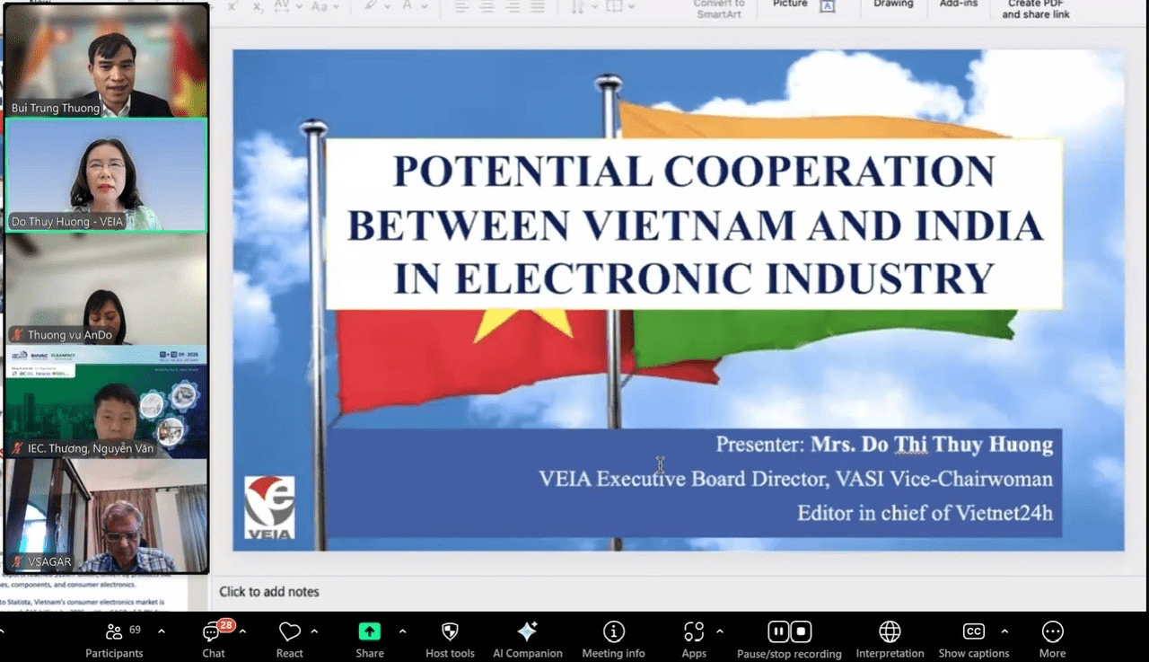 Ngày 17/6/2025, Thương vụ Việt Nam tại Ấn Độ đã phối hợp với các đơn vị của hai nước tổ chức thành công Hội thảo trực tuyến “Hợp tác Việt Nam - Ấn Độ trong ngành Điện và Điện tử”.