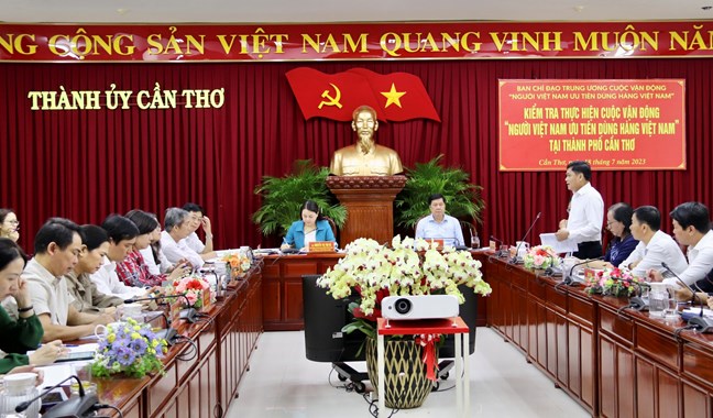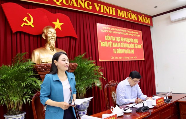 Cần Thơ nâng cao hoạt động tuyên truyền “Người Việt Nam ưu tiên dùng hàng Việt Nam” Ngày 18/7, bà Nguyễn Thị Thu Hà, Uỷ viên Trung ương Đảng, Phó Chủ tịch - Tổng Thư ký UBTƯ MTTQ Việt Nam, Phó Trưởng ban Thường trực Cuộc vận động “Người Việt Nam ưu tiên dùng hàng Việt Nam” (gọi tắt là CVĐ) dẫn đầu đoàn công tác có buổi kiểm tra kết quả thực hiện CVĐ tại thành phố Cần Thơ.