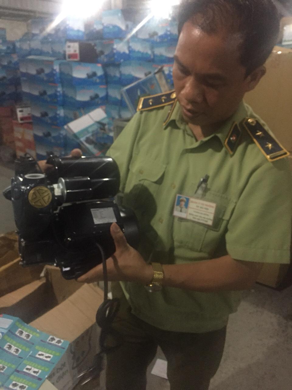 Cụ thể, tại thời điểm kiểm tra, Đoàn kiểm tra phát hiện 166 máy bơm nước nhãn hiệu SUMOEL model LPCP60 có dán nhãn Made in Vietnam và 297 máy bơm nhãn hiệu SUMOEL có nhãn nước ngoài sản suất. Ngoài lượng lớn máy bơm, Đoàn kiểm tra còn phát hiện 3.500 bóng chíp điện tử và 43kg nhãn mác có chữ "Made in Vietnam". Toàn bộ sản phẩm đều là hàng mới, chưa qua sử dụng.