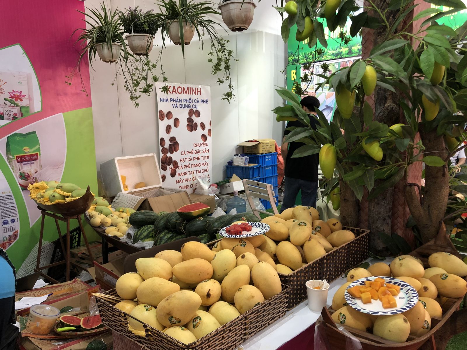 Gian hàng giới thiệu những sản phẩm tiêu biểu của tỉnh Sơn La bao gồm các loại trái cây, củ quả, và đồ khô