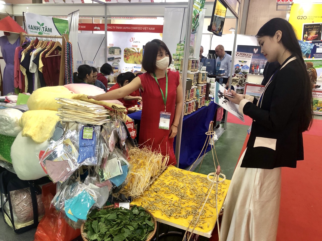 Gian hàng trưng bày và giới thiệu các sản phẩm được làm từ từ tơ tằm
