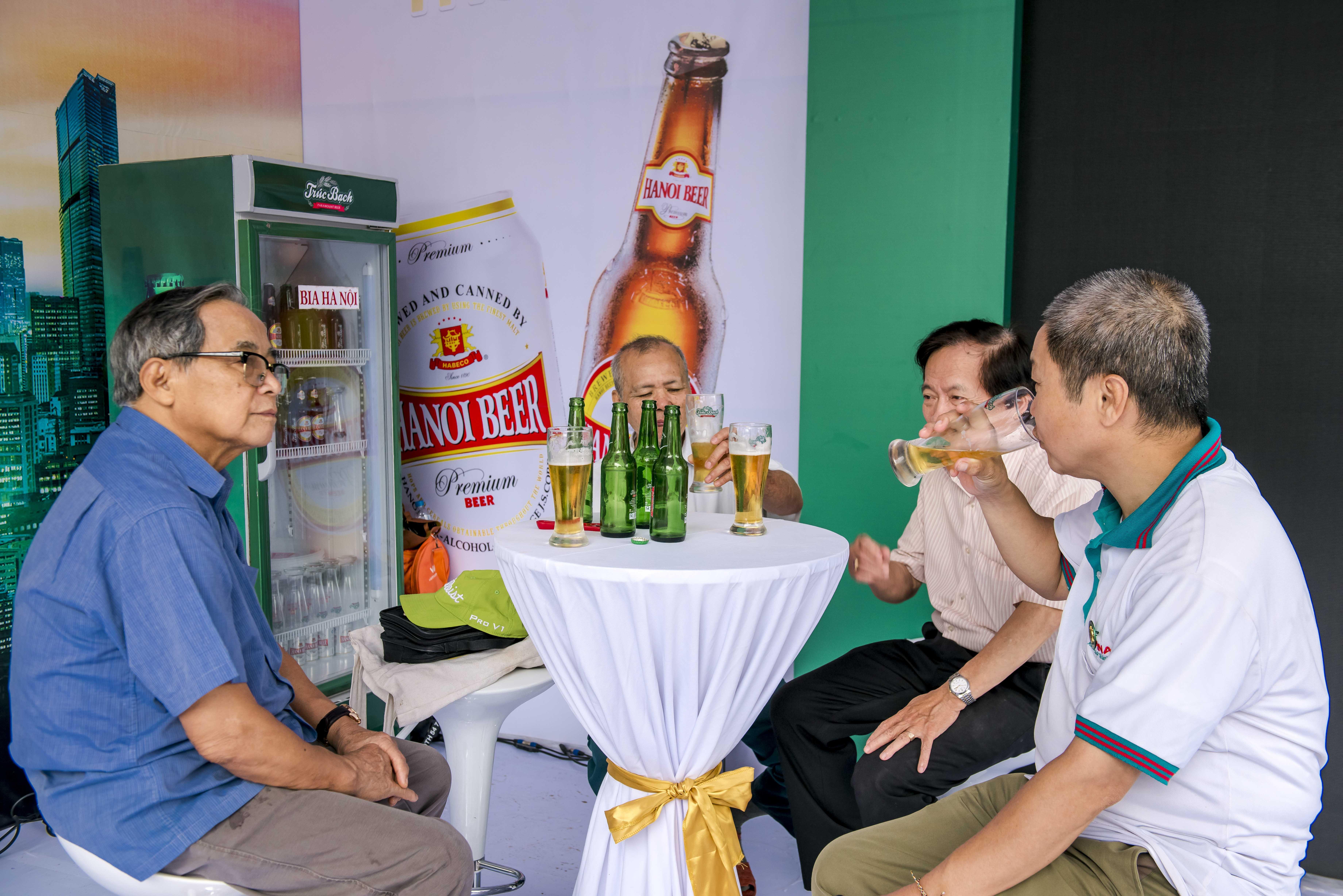 Khách thăm quan thưởng thức Bia Hà Nội tại Triển lãm.