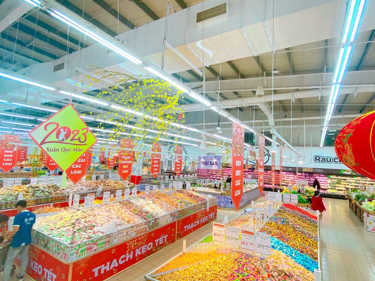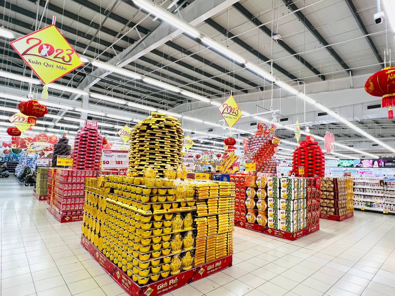 Hàng việt "áp đảo" tại hệ thống các siêu thị thời điểm cận Tết Nguyên đán 2023 Tết Nguyên đán 2023 đang đến gần, thời điểm này, một số hệ thống siêu thị lớn như: Mega Market, Big C, Hapro Mart, Co.opmart, Winmart, Intimex… đã hoàn tất công tác phục vụ hàng Tết. Đáng chú ý, tỷ lệ hàng Việt tại các siêu thị này năm nay vẫn chiếm ưu thế.