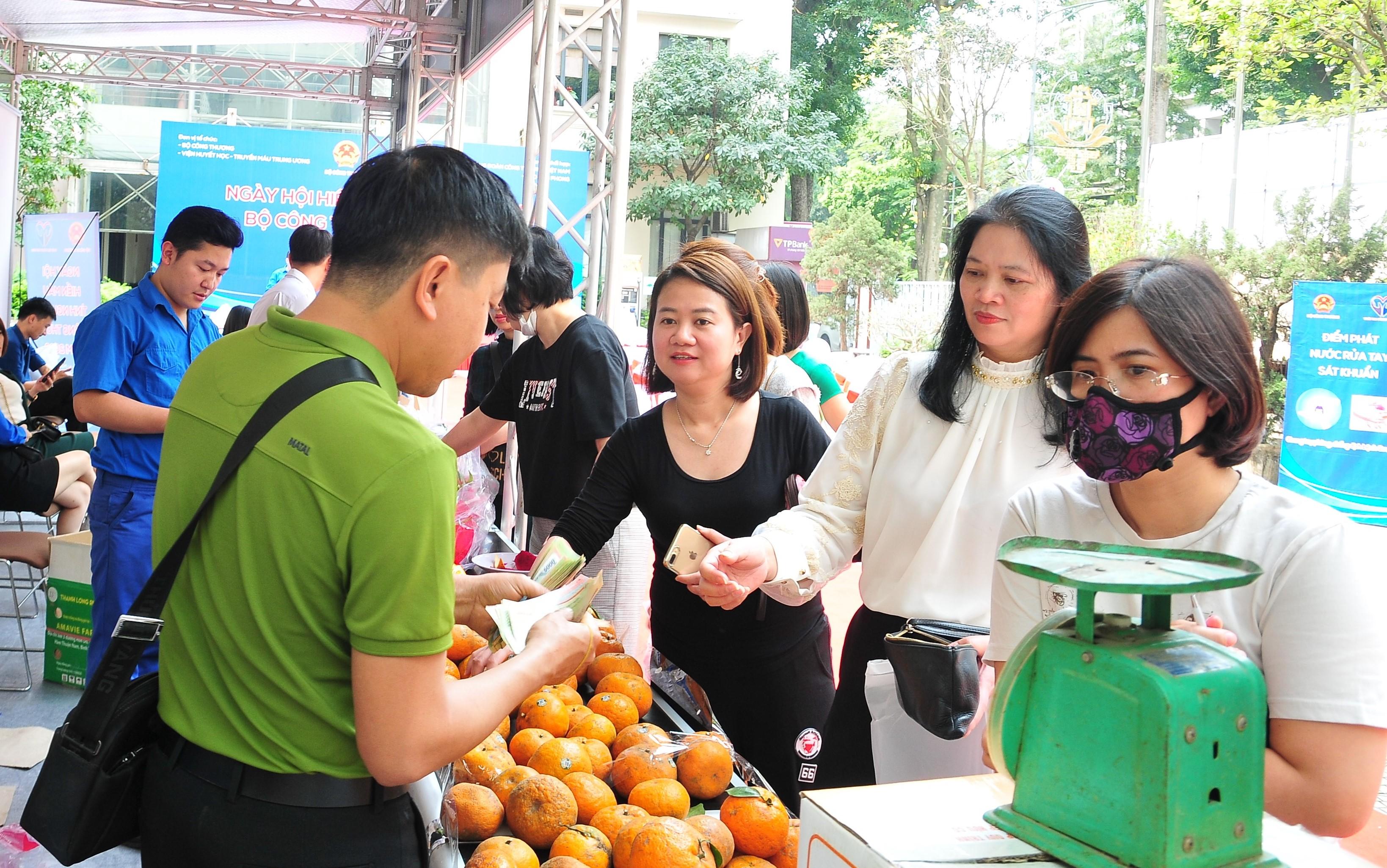 Kết thúc Ngày hội hiến máu, đã có 5 tấn cam Hà Giang, 2 tấn thanh long đỏ Bình Thuận, cùng hàng triệu sản phẩm khác như: tinh dầu dược liệu, nước rửa tay, xà phòng... được những người tham gia hiến máu lựa chọn.