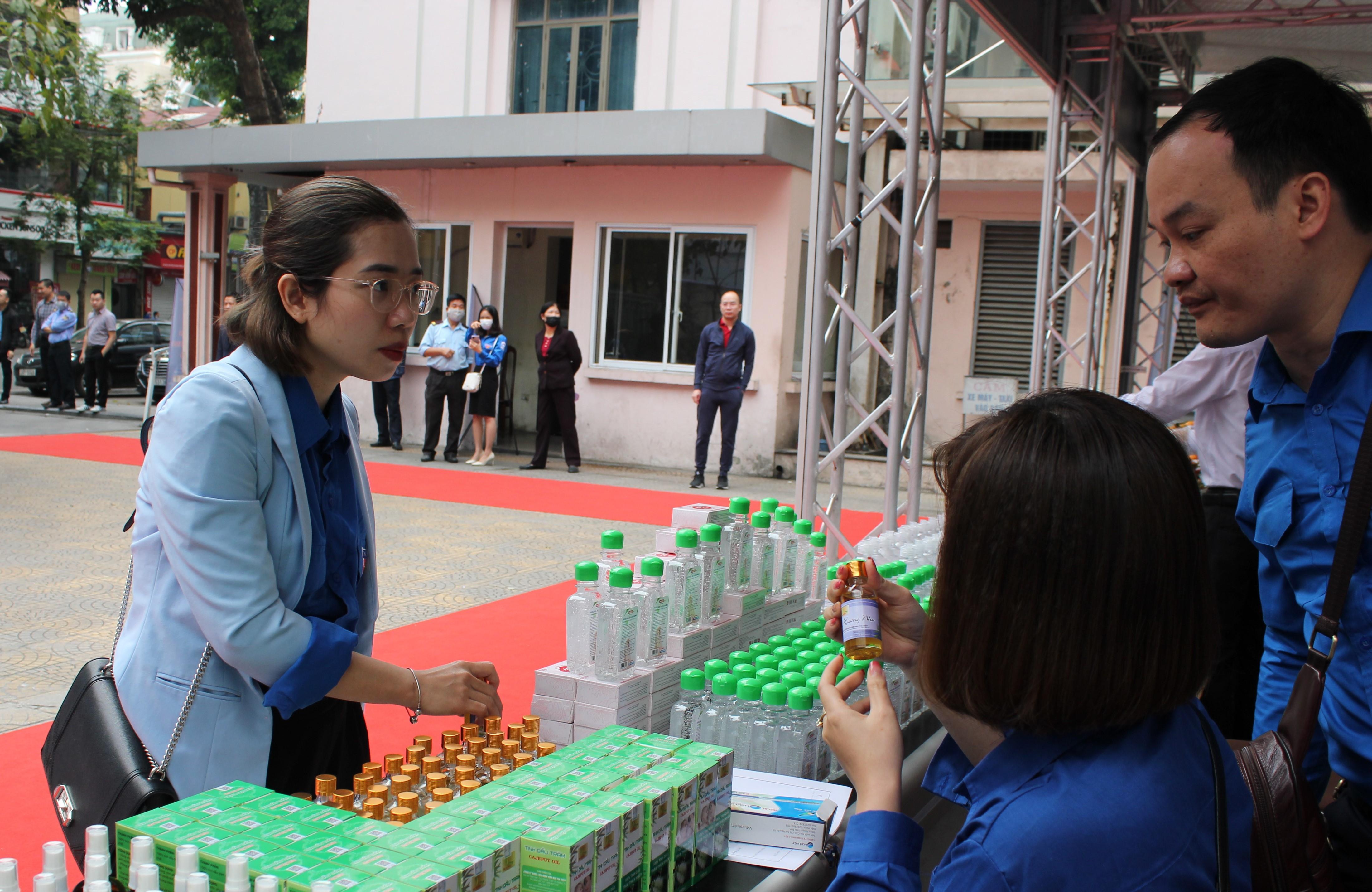 Đồng hành cùng Ngày hội, Đoàn Thanh niên Bộ Công thương tổ chức ba gian hàng quảng bá một số mặt hàng nông sản, tinh dầu dược liệu