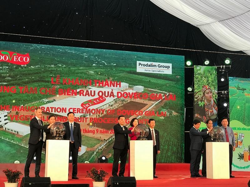 Thứ 3, 10/09/2019 | 00:00 A- A A+ | Lễ khánh thành Trung tâm chế biến rau quả Doveco Gia Lai Công ty CP Thực phẩm xuất khẩu Đồng Giao vừa tổ chức Lễ khánh thành Trung tâm chế biến rau quả Doveco Gia Lai tại huyện Mang Yang, Gia Lai.