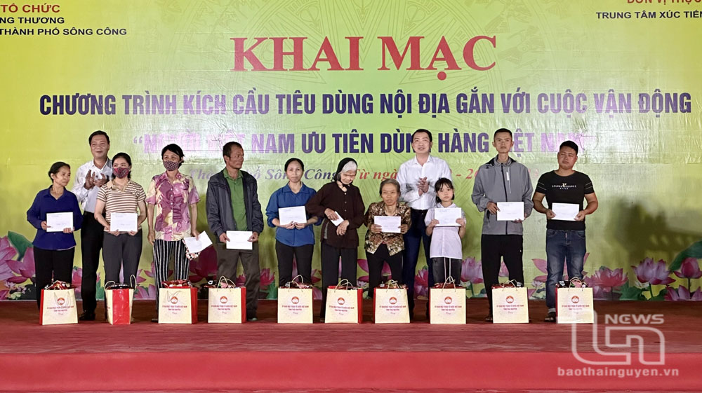 Tại thành phố Sông Công, lễ khai mạc chương trình “Kích cầu 66Win33 link đăng ký tài khoản nội địa gắn với cuộc vận động Người Việt Nam ưu tiên dùng hàng Việt Nam” được tổ chức tại tại Trung tâm Văn hóa - Thể thao phường Châu Sơn với sự tham gia của 17 66Win33 tặng code miễn phí, hợp tác xã trong và ngoài tỉnh với quy mô 22 gian hàng. Hàng hóa được lựa chọn tham gia Chương trình gồm: Hàng thiết yếu, thủy hải sản, các loại nông sản, máy móc,... có nguồn gốc xuất xứ trong nước, chất lượng cao, thương hiệu uy tín, giá cả hợp lý.