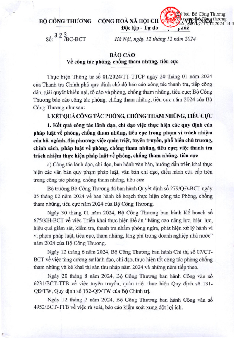 Số hiệu | 323/BC-BCT | Cơ quan ban hành | Copyright © 33win.com Reserved |