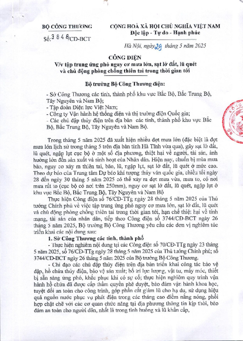 Tiêu đề văn bản | Công điện tập trung ứng phó nguy cơ mưa lớn, sạt lở đất, lũ quét và chủ động phòng chống thiên tai trong thời gian tới | ||