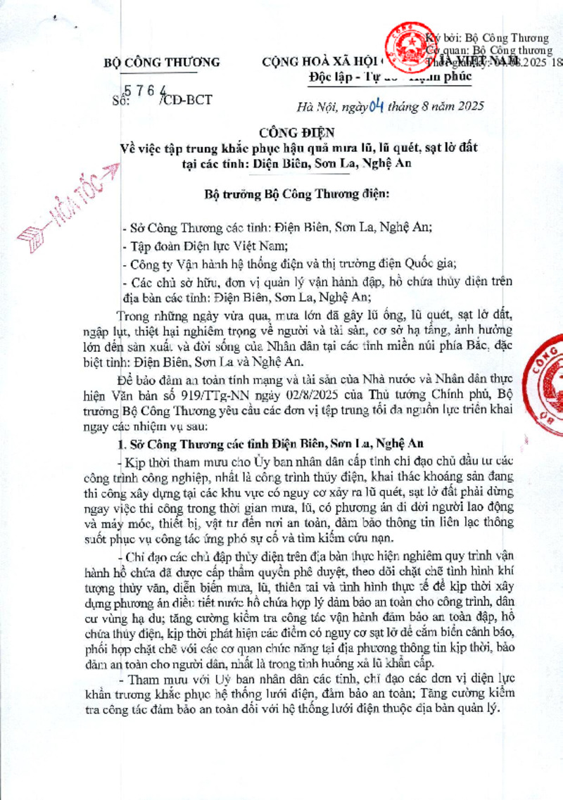 Tiêu đề văn bản | Công điện về việc tập trung khắc phục hậu quả mưa lũ, lũ quét, sạt lờ đất tại các tỉnh: Điện Biên, Sơn La, Nghệ An | ||