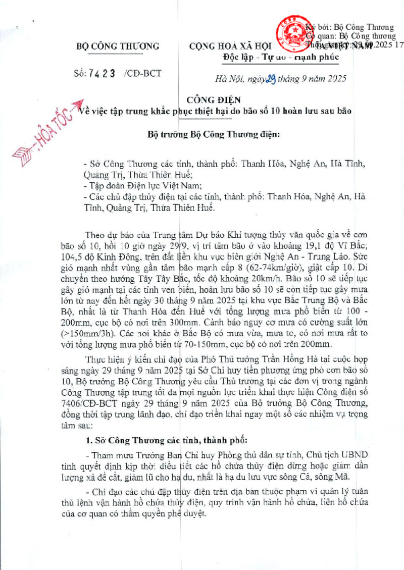 Tiêu đề văn bản | Công điện Về việc tập trung khắc phục thiệt hại do bão số 10 hoàn lưu sau bão | ||