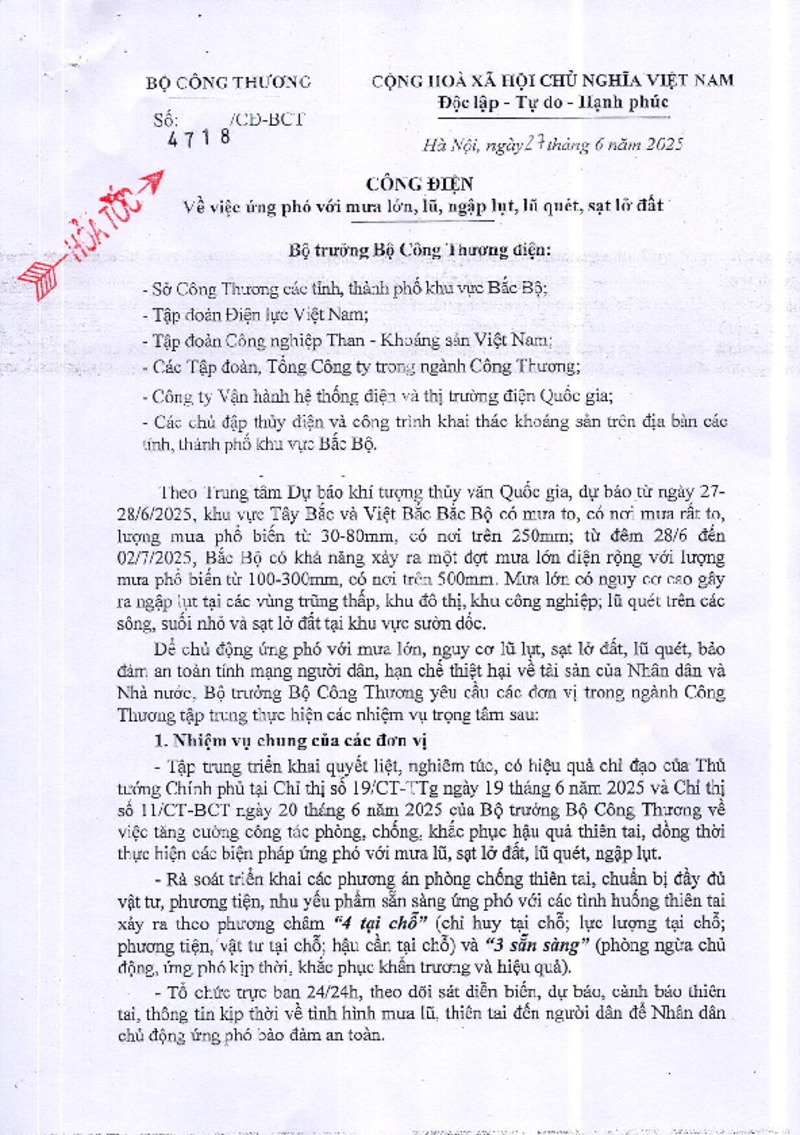 Tiêu đề văn bản | Công điện về việc ứng phó với mưa lớn, lũ, ngập lụt, lũ quét, sạt lở đất | ||