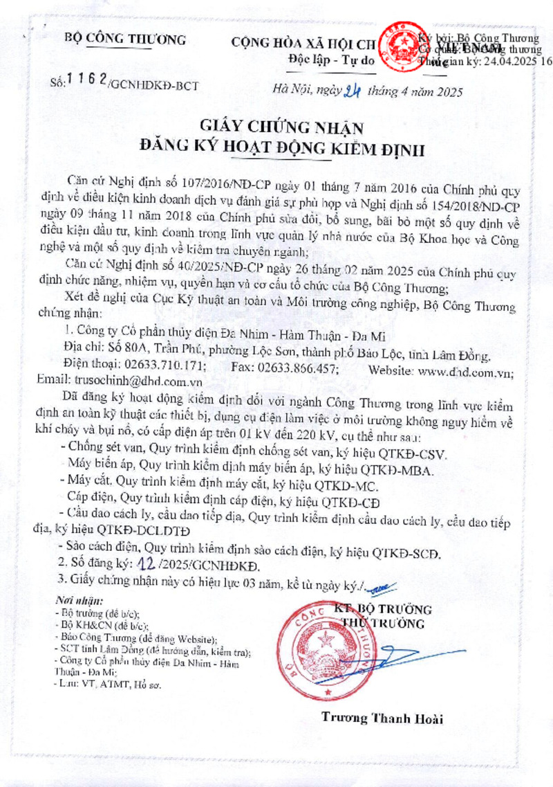 Tiêu đề văn bản | Giấy chứng nhận đăng ký hoạt động kiểm định | ||